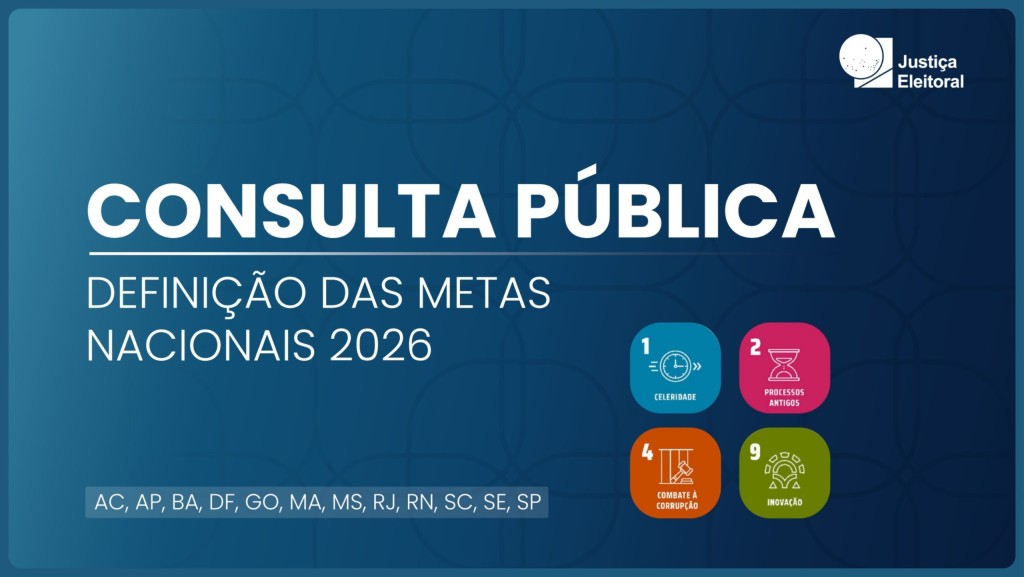 O Tribunal Regional Eleitoral de Mato Grosso (TRE-MT) convida toda a sociedade a participar da Consulta Pública das Metas Nacionais do Poder Judiciário para 2026.