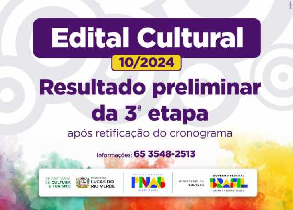 A Prefeitura de Lucas do Rio Verde, por meio da Secretaria de Cultura e Turismo, divulgou nesta terça-feira (15) o resultado preliminar da 3ª etapa