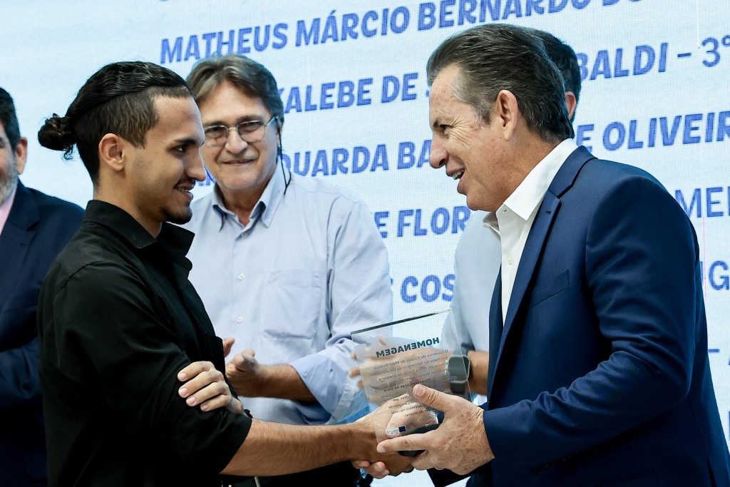 O governador Mauro Mendes realizou, no Palácio Paiaguás, uma homenagem a dezenas de estudantes da rede estadual que se destacaram nas provas do Enem e