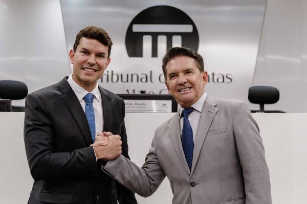 Crédito: Diego Castro/MPC-MT Presidente Sérgio Ricardo e o novo conselheiro Alisson Carvalho de Alencar. Clique aqui para ampliar A responsabilidade institucional, o diálogo e a