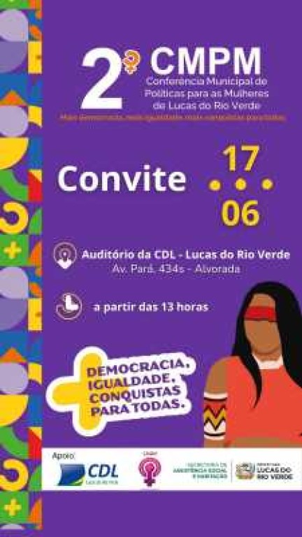 O Conselho Municipal dos Direitos da Mulher e a Secretaria de Assistência Social e Habitação, com o apoio da Câmara dos Dirigentes Lojistas (CDL) de Lucas do Rio Verde, realizarão a 2ª Conferência Municipal de Políticas para as Mulheres. O encontro será um momento especial para ouvir, trocar experiências e, principalmente, pensar juntas em caminhos para fortalecer os direitos das mulheres e promover a igualdade de gênero no município.