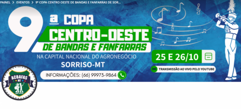 Prepare-se para dois dias de muita música, energia e coreografias que encantam! Nos dias 25 e 26 de outubro, a Praça da Juventude, em Sorriso, será tomada por 42 bandas e fanfarras de 25 municípios, reunindo aproximadamente 1.400 músicos para a 9ª Copa Centro-Oeste de Bandas e Fanfarras.