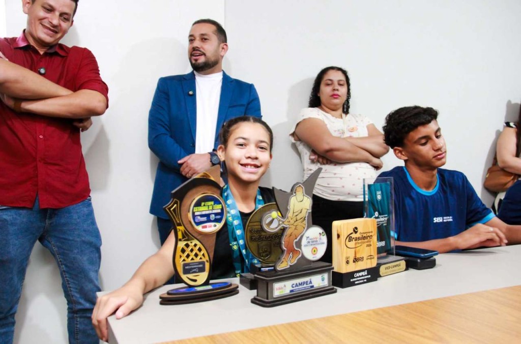 Agnes é aluna da Escola Municipal de Educação Básica (EMEB) ‘Profª Marilce Benedita de Arruda’, localizada no bairro Centro Sul há mais de um ano. Além do bom desempenho nas quadras de tênis, ela também se destaca como uma aluna exemplar.