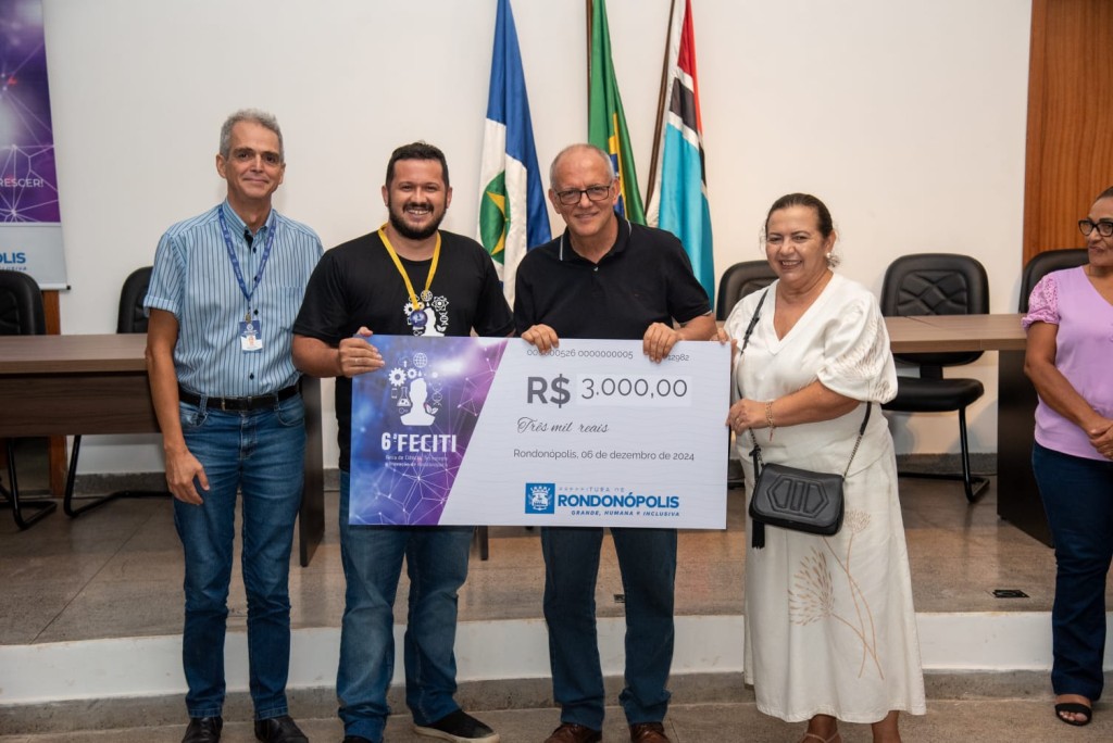 O estudante Allessandro Brocco, da Escola Técnica Estadual de Educação Profissional e Tecnológica de Rondonópolis, venceu em primeiro lugar a 6ª Edição da Feira Municipal de Ciência, Tecnologia e Inovação (Feciti) na categoria Ensino Médio, Técnico e Educação para Jovens e Adultos (EJA). Com uma pesquisa sobre controle e qualidade de água para bovinos, ele levou prêmio de R$ 3 mil.
