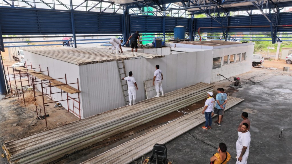 A rede de esgoto está com 80% concluída, e a concretagem do piso será finalizada nos próximos dias. Além disso, a estrutura dos novos espaços comerciais já começou a ser erguida, com cerca de 25% concluída.