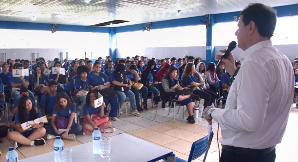 O projeto realizado pelo Tribunal de Justiça de Mato Grosso (TJMT), ‘Nosso Judiciário’, que leva conhecimento sobre os direitos e deveres do cidadão para estudantes do ensino fundamental e médio da rede pública e privada, realizou a última palestra de 2024, nessa terça-feira (26 de novembro), para mais de 200 estudantes do ensino fundamental da Escola Estadual Juarez Rodrigues dos Anjos, no bairro Osmar Cabral, Cuiabá. A palestra ministrada pelo servidor do TJMT, Neifi Feguri, ensinou aos alunos sobre diversos assuntos e casos do cotidiano que acontecem dentro das escolas e na sociedade; cyberbullying, injúria racial, importunação sexual, omissão de socorro, direitos do consumidor, falsificação de documentos, tráfico de drogas e crimes ambientais.