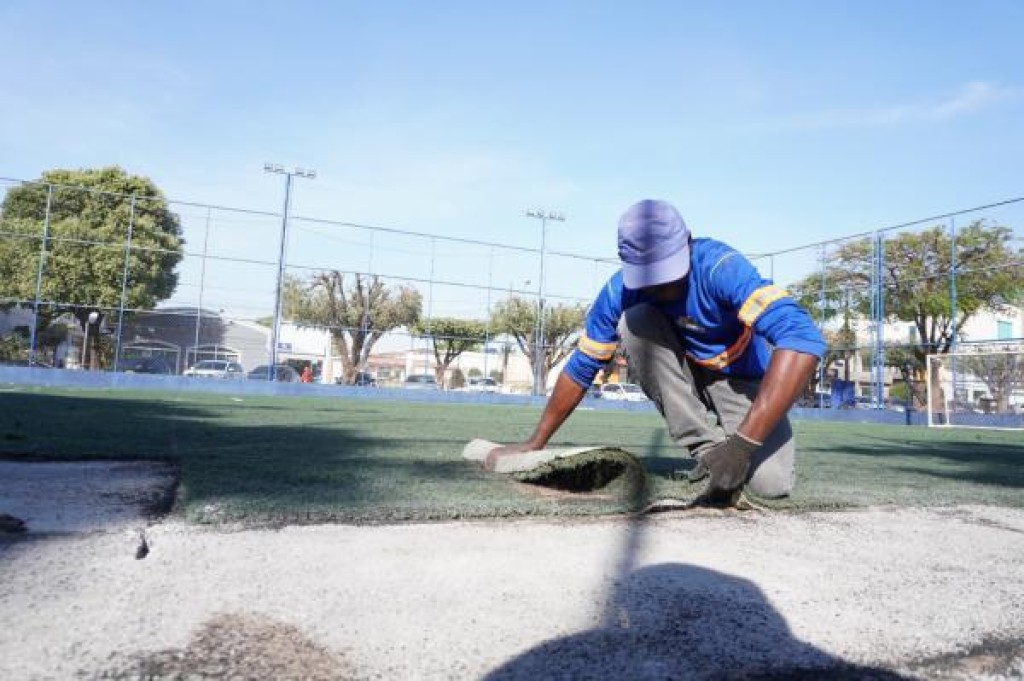 Esporte de leste a oeste e de norte a sul. Assim está Sorriso com espaços esportivos e recreativos em todas as regiões da cidade. E para manter a qualidade da oferta, a Praça da Juventude passa por serviços de manutenção com a substituição da grama sintética das quadras.