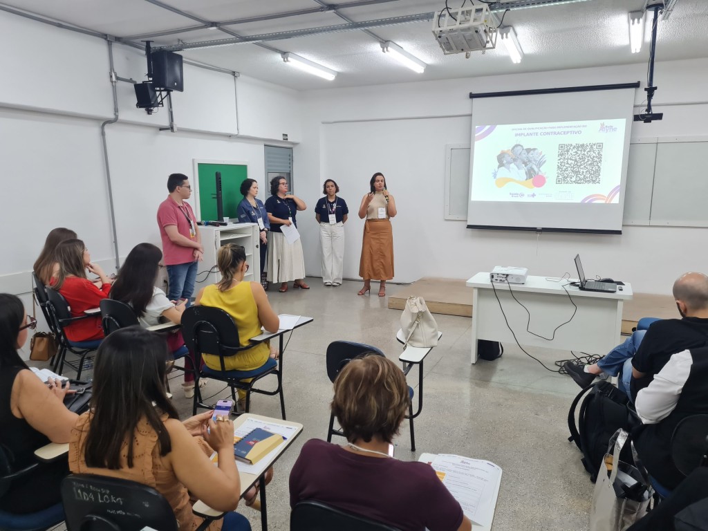 Durante a oficina, foram tratados os direitos sexuais e reprodutivos, os métodos contraceptivos disponíveis pelo SUS, como fazer o manejo de intercorrências do implante contraceptivo e orientações pós-inserção.
