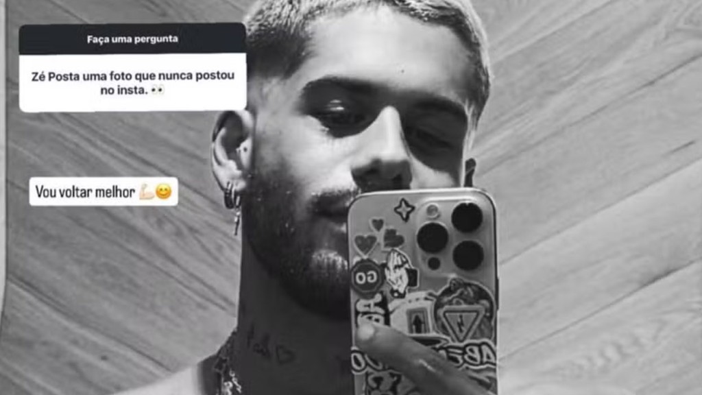 A publicação surgiu após uma interação com seguidores. “Zé, posta uma foto que você nunca postou no Insta”, pediu um internauta por meio da caixinha de perguntas. Sem muita demora, o artista atendeu ao pedido e divulgou um clique do jeitinho que veio ao mundo, acompanhada da legenda enigmática: “Vou voltar melhor”.